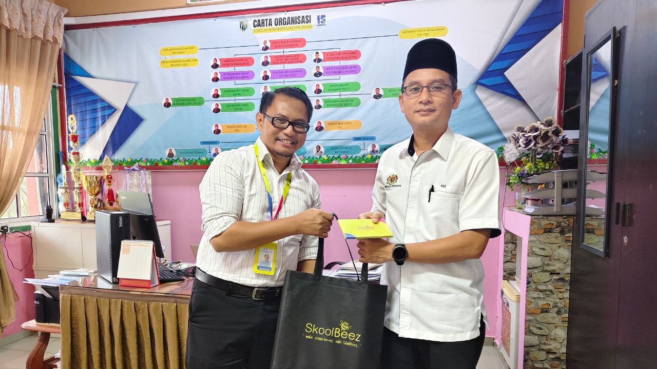 9 Mac 2026, Benut, Pontian - Pasukan SkoolBeez telah mengadakan sesi perbincangan bersama pihak SK Seri Bugis bagi membincangkan cadangan penyertaan sekolah tersebut dalam program Tanggungjawab Sosial Korporat (CSR) SkoolBeez. Sesi ini melibatkan Tuan Mohd Razi bin Masuan (Guru Besar), Puan Roshidah binti Sahak (Guru Perpustakaan dan Media) serta Muhamad Afiq Irshad bin Mohd Ali (Guru ICT).