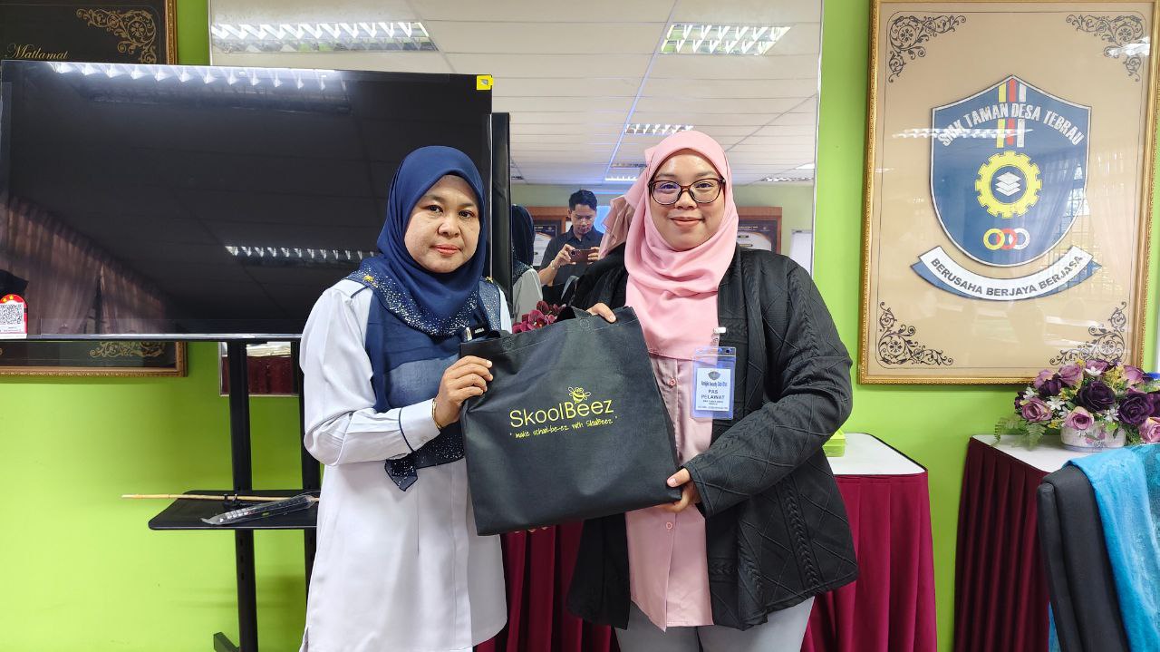 23 Februari 2026, Pasir Gudang - Pasukan SkoolBeez telah mengadakan sesi demonstrasi dan latihan pengguna ringkas di SMK Taman Desa Tebrau yang dihadiri oleh Puan Ambia binti Mat (Pengetua), Puan Jalinawaty binti Abdul Jalil (PK Sesi Petang) serta Puan Zanariah binti Iskandar (Guru Perpustakaan dan Media) bersama guru-guru sekolah.