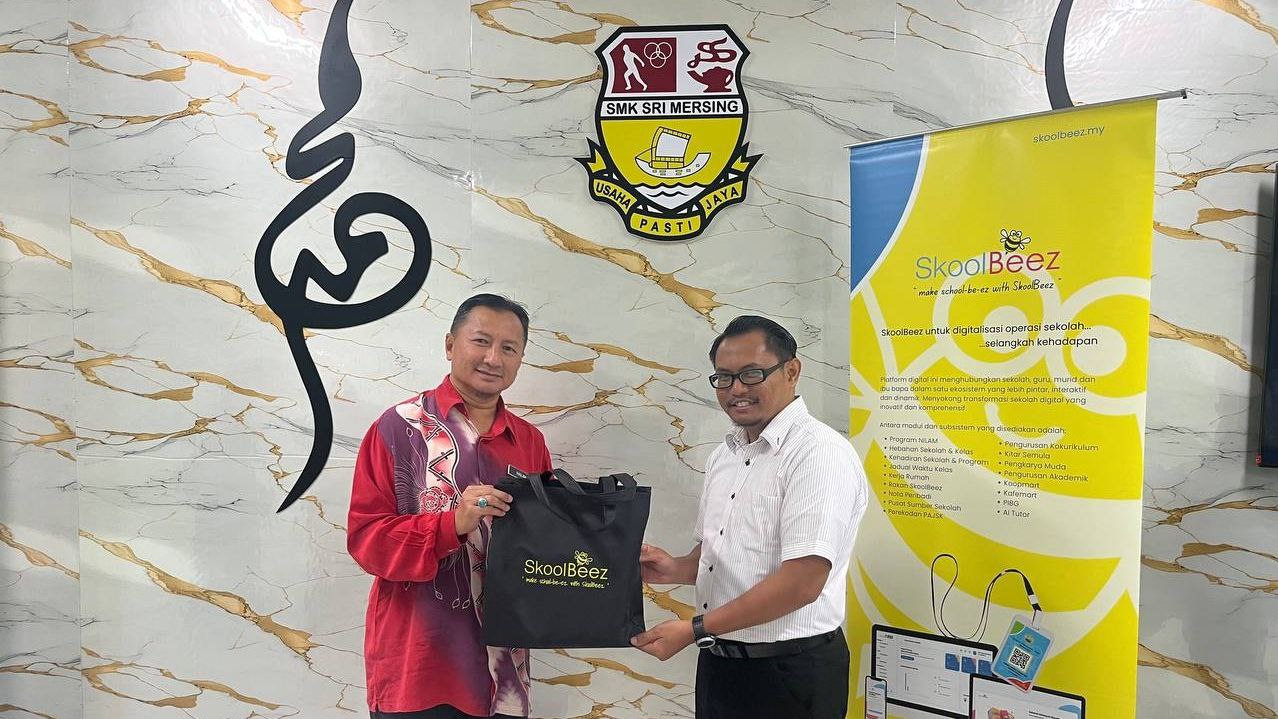 12 Mac 2026, Mersing - Pasukan SkoolBeez telah mengadakan sesi demonstrasi bersama pihak pentadbir dan guru di SMK Seri Mersing yang berlangsung di bilik mesyuarat sekolah. Sesi ini melibatkan En Halim bin Suddin (Penolong Kanan Pentadbiran), Puan Nor Azura binti Sidek (GPK Mata Pelajaran - Bahasa), Puan Hedayah bt Ab Majid (Guru Perpustakaan dan Media) serta En Mohamad Aminuddin bin Mohd Amin (Pembantu Khidmat Am - Perpustakaan).