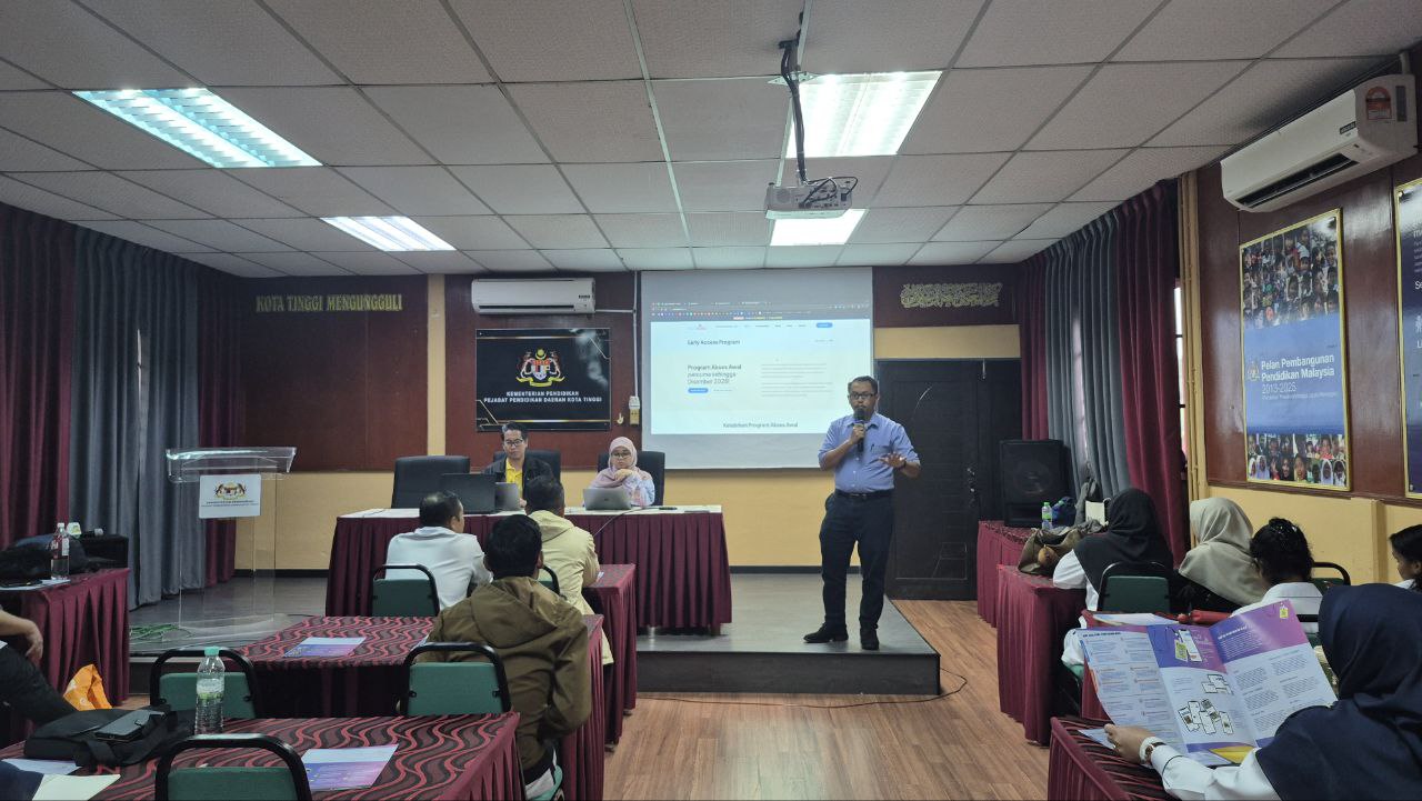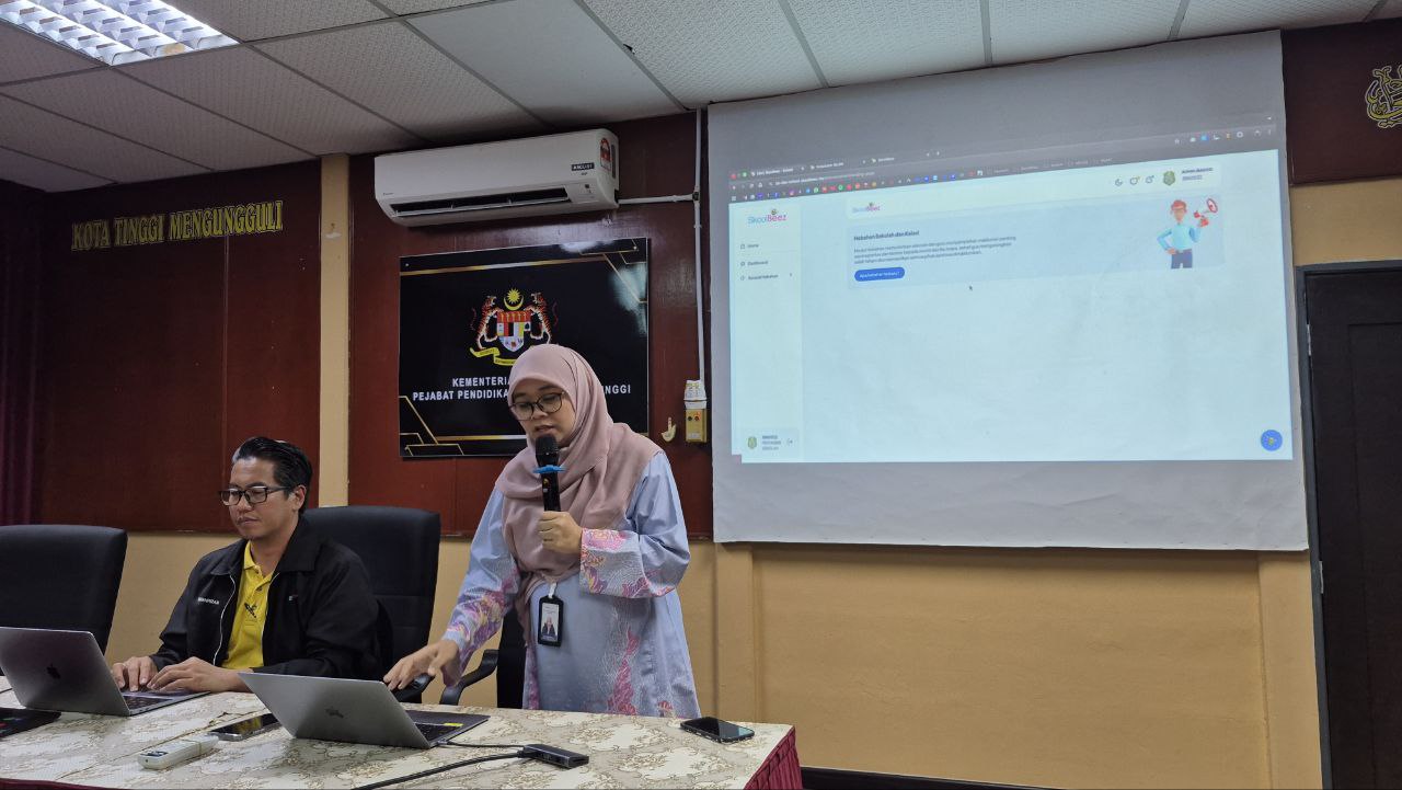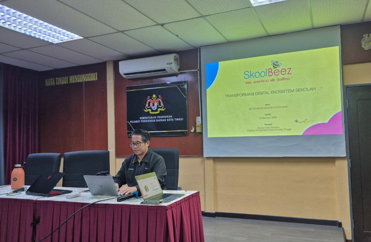Sesi berlangsung pada sebelah petang, dari jam 2.00 hingga 4.00 petang, bertempat di Dewan Seri Warisan, PPD Kota Tinggi, atas jemputan En. Mohd Kamal Iskandar bin Mohd Shafri, Penolong PPD Sumber dan Teknologi Pendidikan. Dalam slot ini, pihak SkoolBeez telah membentangkan gambaran menyeluruh ekosistem digital SkoolBeez, termasuk pelbagai modul dan subsistem yang menyokong transformasi digital sekolah secara menyeluruh — dari aspek Pusat Sumber, NILAM, pengurusan pengguna, program sekolah, kehadiran, fasiliti dan banyak lagi.